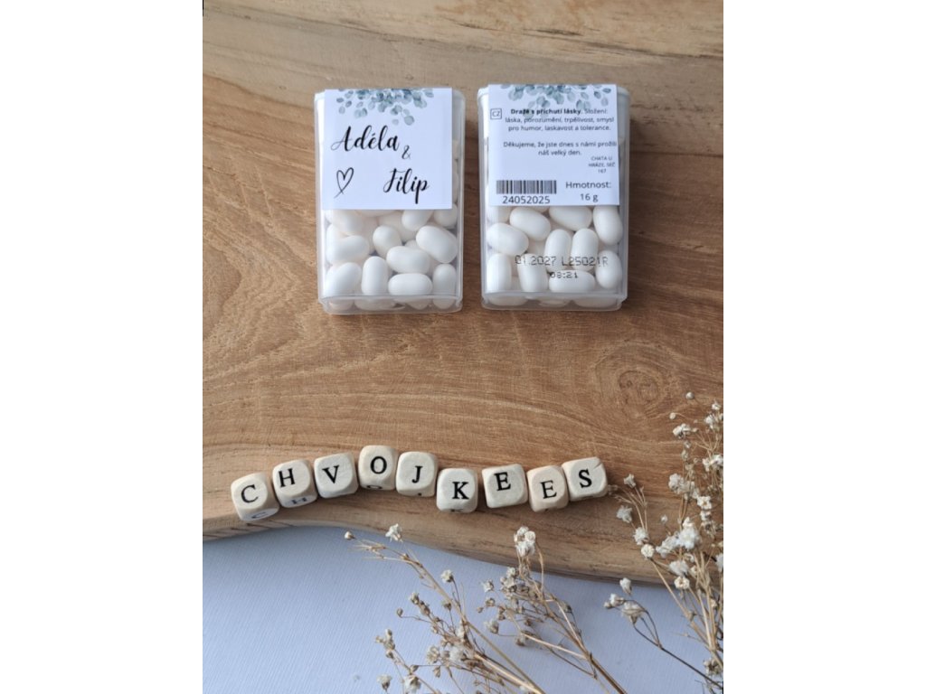 Naše personalizovaná samolepka je navržená tak, aby perfektně seděla na krabičku s mentolovými bonbony (běžný formát 18g). Ideální pro svatební stůl, výslužky nebo jako drobný dárek při rozlučce se svobodou.